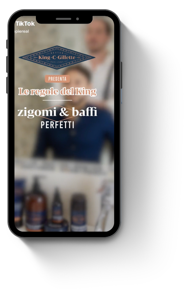 Awareness campaign on the Gillette King C product lines through an entertaining and educational series, in which creators styled different parts of their beards with products. The campaign went live around Christmas with the aim of making the products desirable gifts. Released on TikTok in Italy.